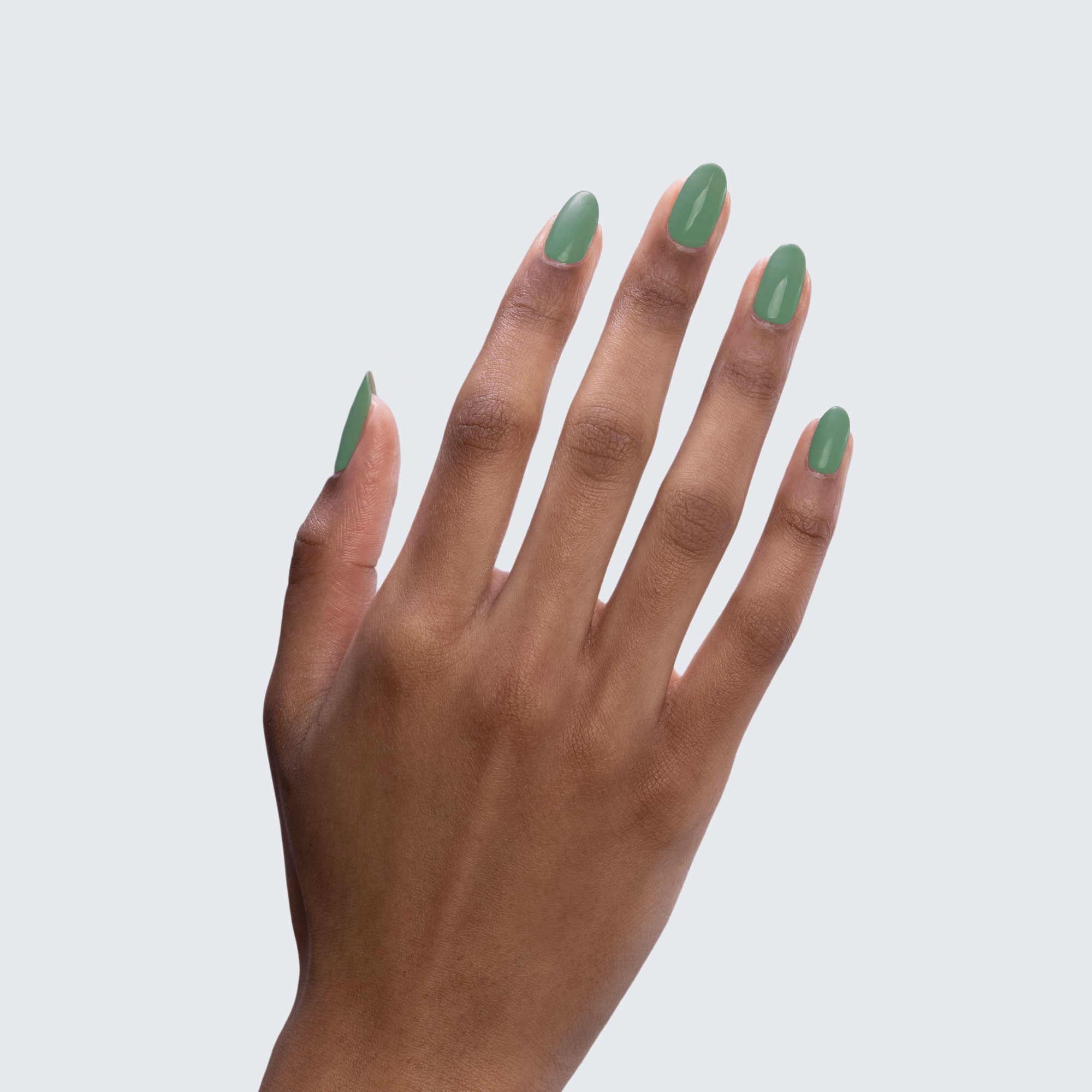 Mint green. Muted. Medium. Opaque. Warm undertone.